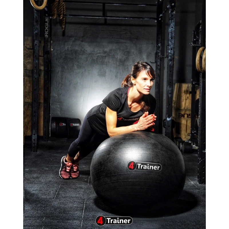 Le ballon suisse 4Trainer anti-éclatement peut également être utilisé en musculation en rajoutant des charges additionnelles au poids de corps ( barre de musculation, haltères, kettlebells.. ).