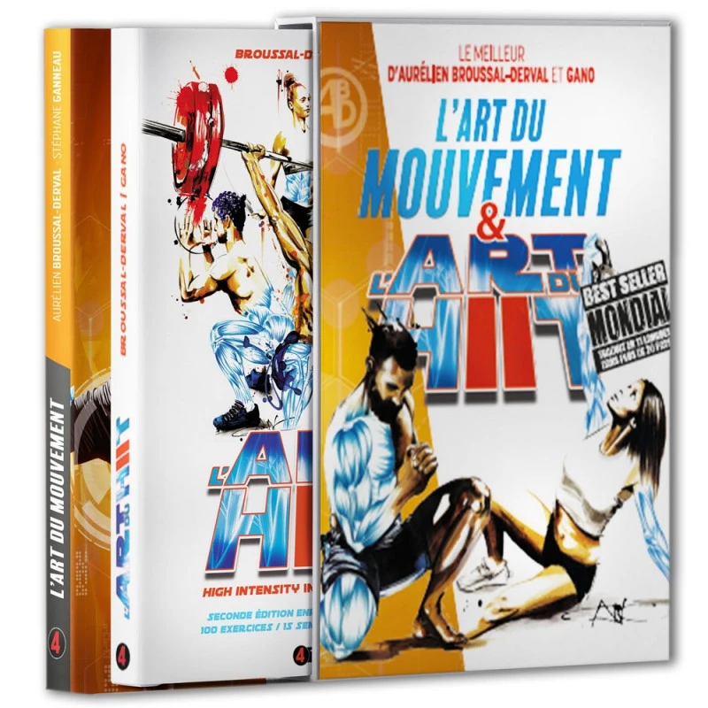 Retrouvez dans ce coffret L’ART DU MOUVEMENT ainsi que L’ART DU HIIT, des bests sellers par Aurélien BROUSSAL-DERVAL et 4TRAINER EDITIONS, désormais traduits dans le monde entier !